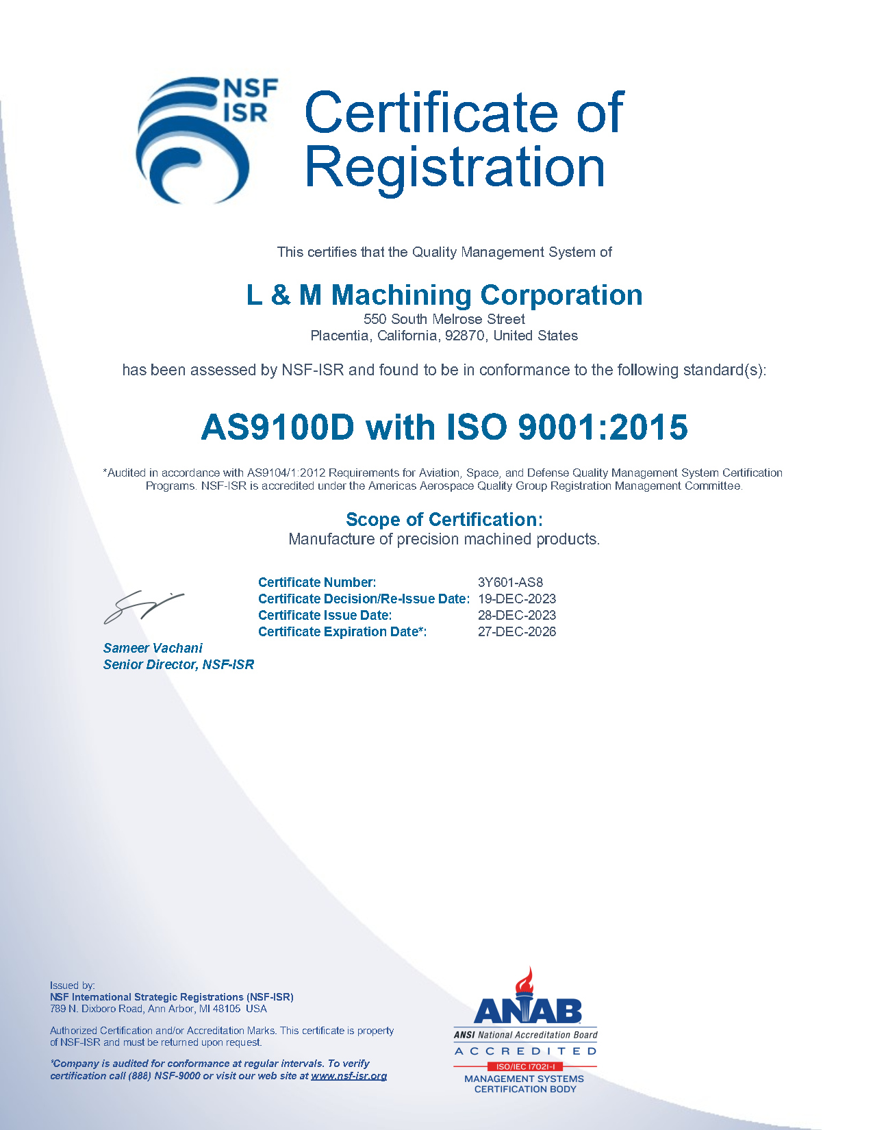 L & M MACHINING CORPORATION - 550 S Melrose St, Placentia, CA 92870 - 714 . 414 . 0923